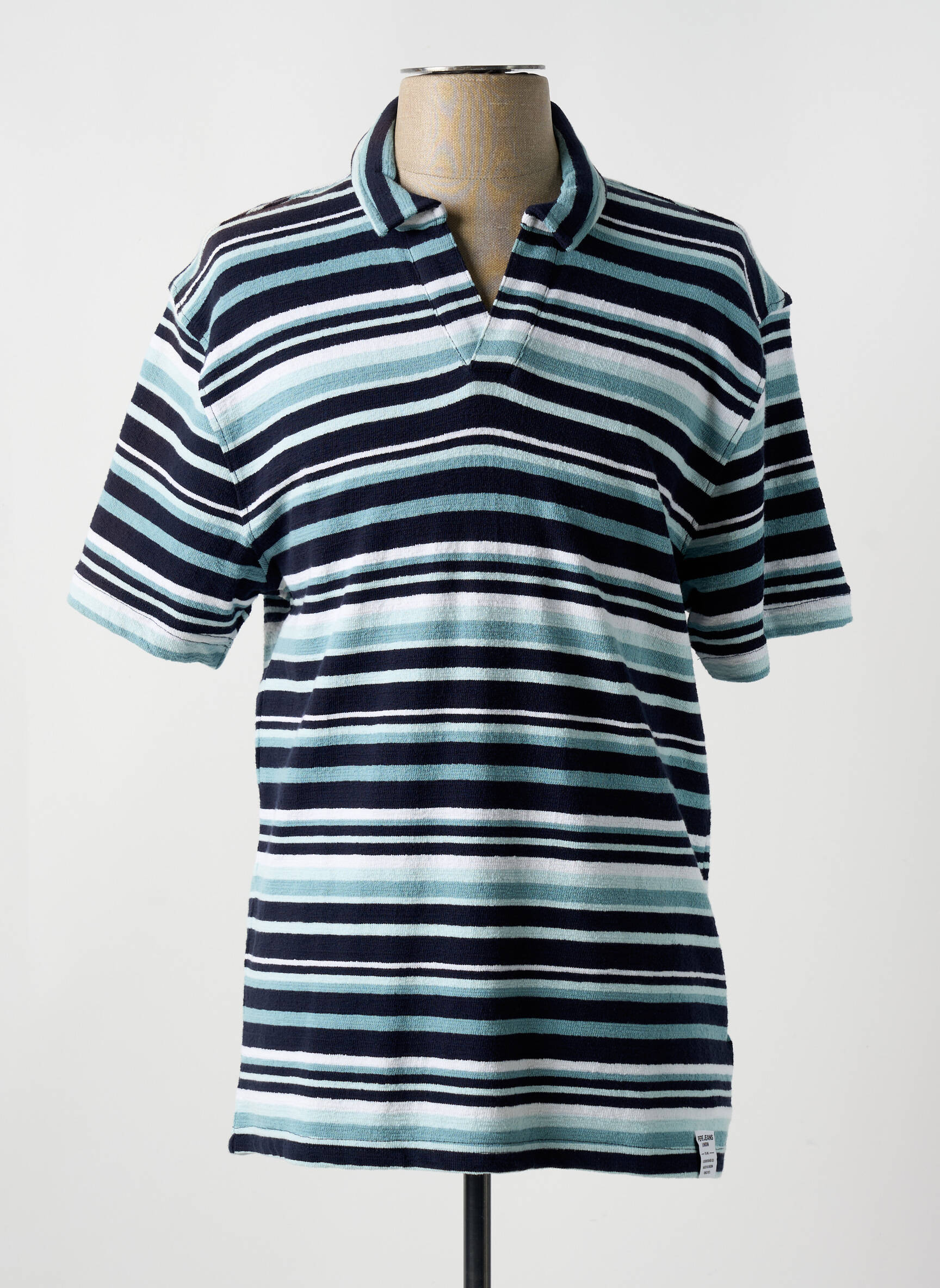 Profitez d’un bon plan exceptionnel avec ce polo PEPE JEANS pour homme, parfait pour ceux qui recherchent style et économie sans compromis. Affichant un motif à rayures horizontales dans des tons bleus, blancs et bleu marine, ce polo offre un look casual et tendance, rehaussé par un col original légèrement ouvert. Son design intemporel s’adapte facilement à toutes vos tenues, idéal pour les beaux jours comme pour une allure soignée au quotidien, tout en restant à prix doux.