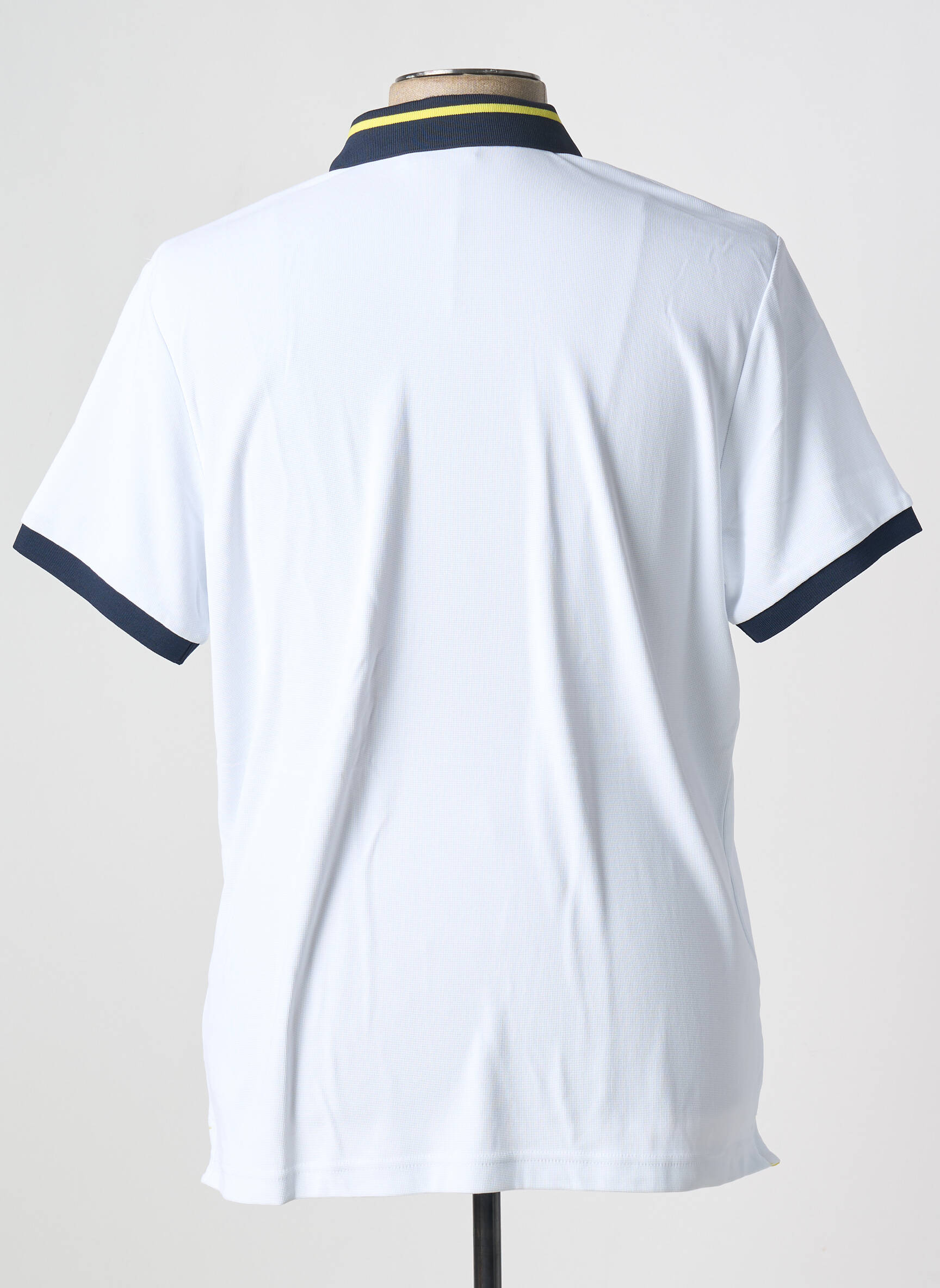 Profitez d’un véritable bon plan avec ce polo pour homme signé TBS, qui combine élégance sportive et allure décontractée à petit prix. Son tissu léger blanc est rehaussé de finitions contrastantes bleu marine et jaune au col ainsi qu’aux manches, pour une touche moderne et dynamique. La patte boutonnée et les détails graphiques discrets à l’avant apportent une note d’originalité tout en restant facile à associer à toutes vos tenues estivales. C’est l’occasion idéale de vous offrir un classique chic sans vous ruiner.