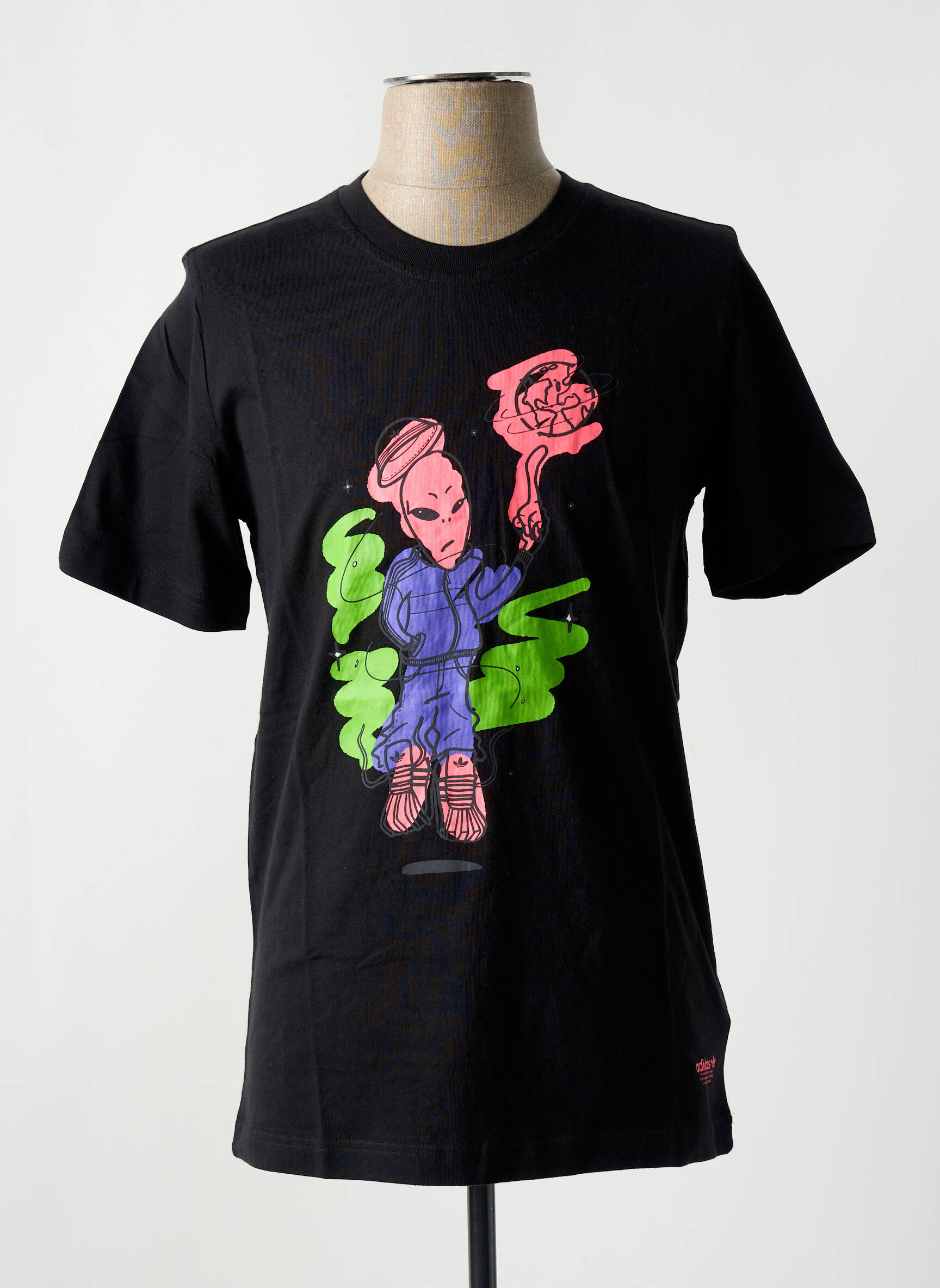 Profitez d’un style unique à petit prix avec ce T-shirt homme signé ADIDAS, parfait pour ceux qui veulent se démarquer sans se ruiner. Son motif graphique audacieux, mettant en avant un personnage original dans des tons rose et vert sur fond noir, apporte une touche moderne et décalée à votre tenue, idéal pour ajouter du caractère à votre dressing tout en réalisant une belle économie.