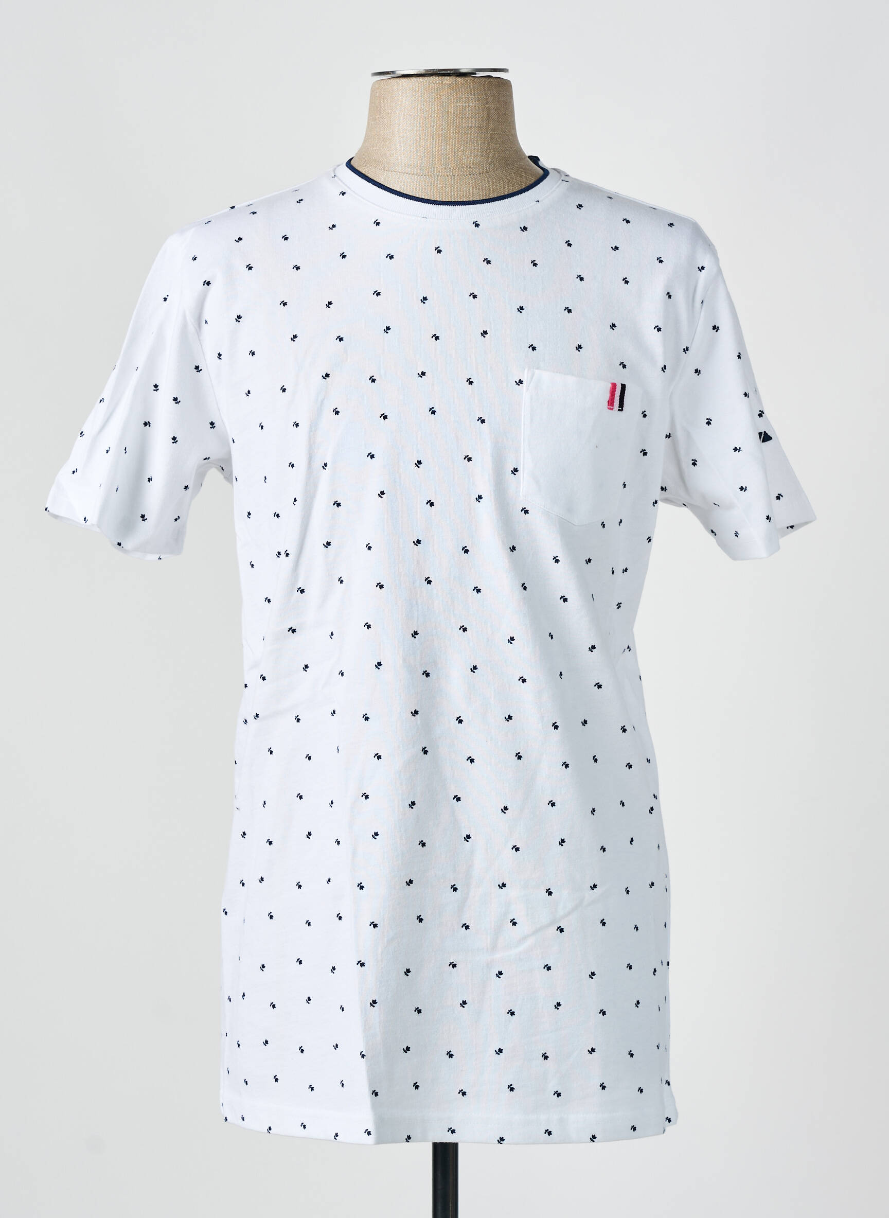 Profitez d’un super bon plan avec ce T-shirt pour homme signé CAMBERABERO : un indispensable du dressing à prix mini, parfait pour un look casual élégant sans se ruiner. Ce modèle arbore un imprimé discret à pois sur fond blanc et se distingue par sa poche poitrine dotée d’un petit détail tricolore, apportant une touche de raffinement à votre tenue de tous les jours. Idéal pour les amateurs de bonnes affaires qui veulent allier style et économie.
