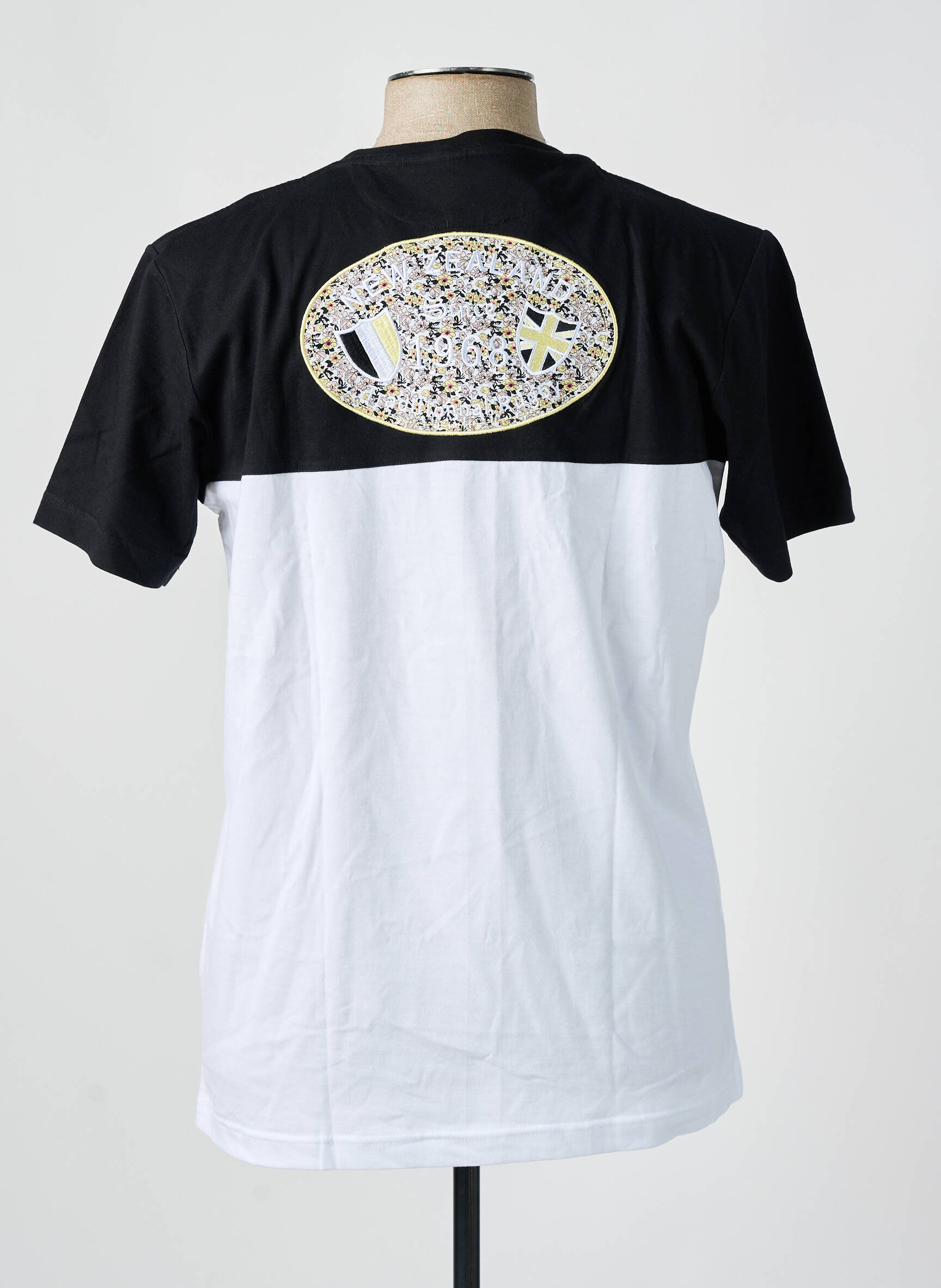 Profitez d’une véritable aubaine avec ce T-shirt CAMBERABERO pour homme, un incontournable affichant un look sport et tendance à prix malin grâce à son contraste réussi entre le noir sur le haut, une bande blanche rehaussée d’un liseré jaune, et sa partie inférieure blanche, le tout souligné par un petit écusson graphique sur la poitrine pour affirmer votre style sans vous ruiner.
