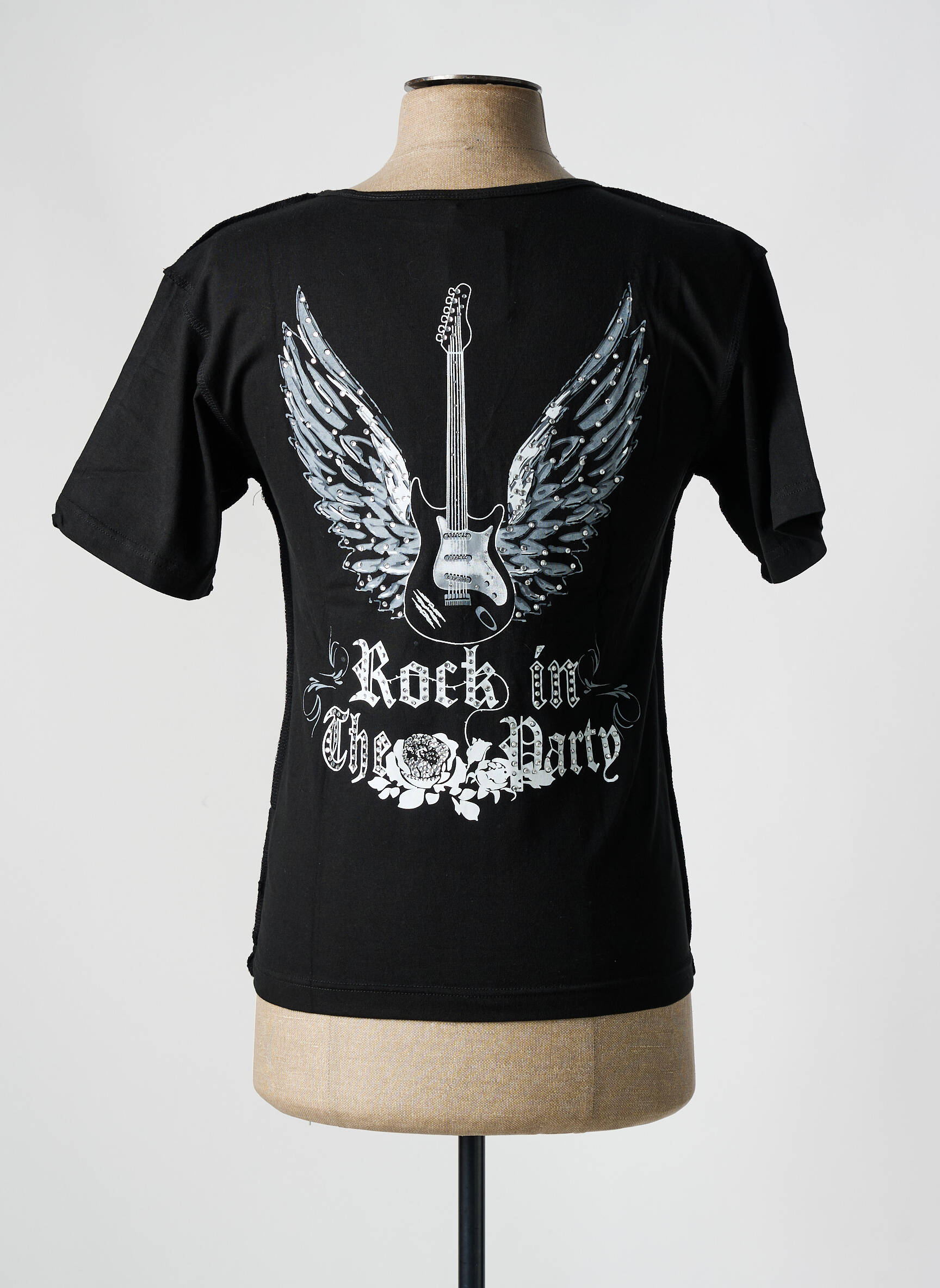 T-shirt Crystal Vintage Noir Manches Courtes