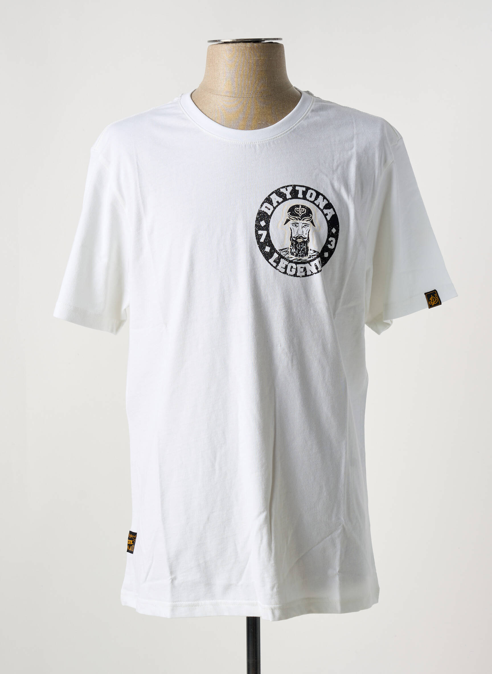 Profitez d’une vraie affaire avec ce T-shirt DAYTONA pour homme, parfait pour un look décontracté et tendance à petit prix. Ce modèle arbore un blanc éclatant rehaussé d’un écusson imprimé sur le torse, mettant en avant l’esprit authentique et vintage de la marque. Sa coupe confortable et ses détails soignés en font un indispensable du dressing masculin, accessible à un tarif exceptionnel grâce à notre sélection déstockage.