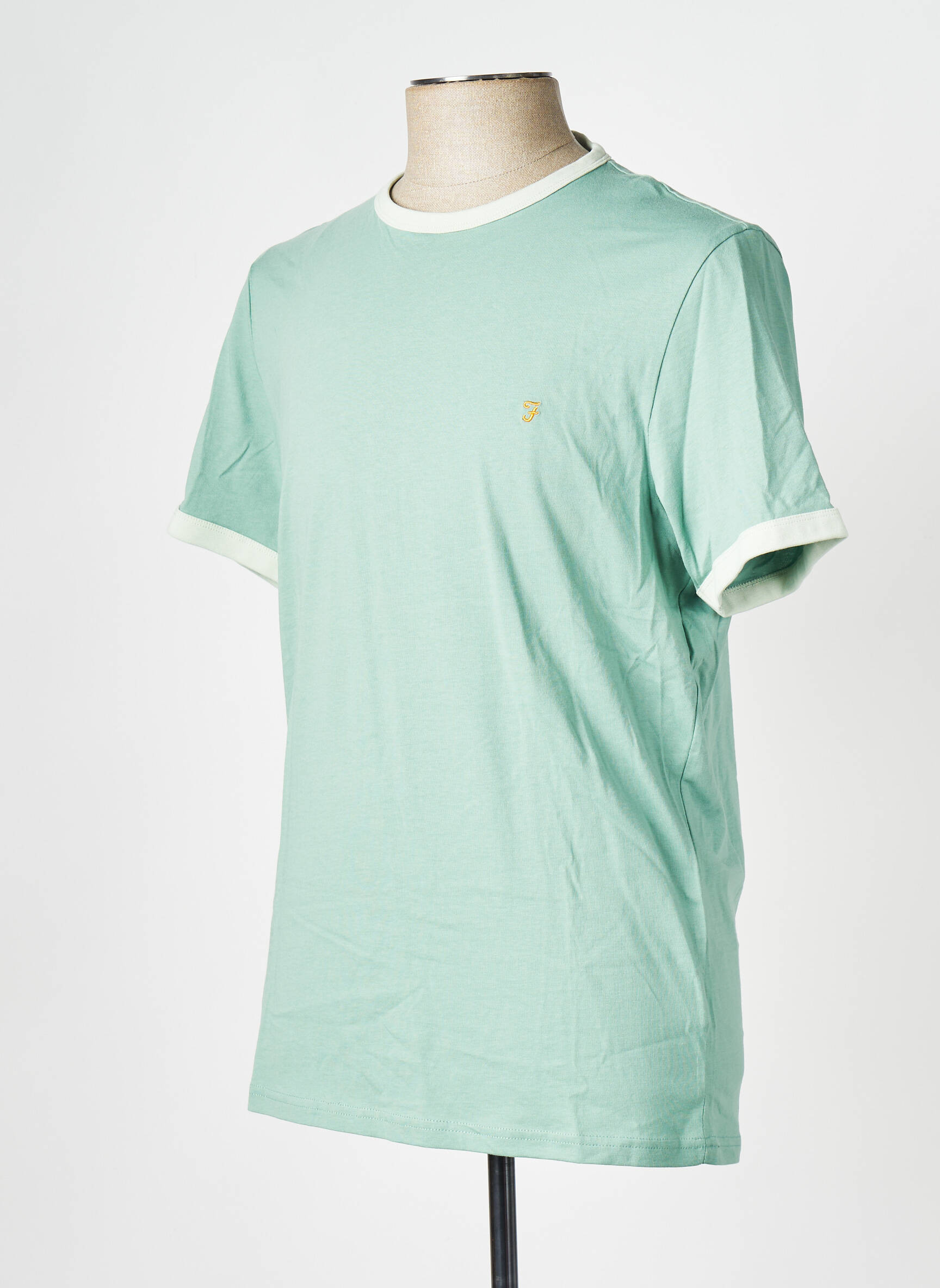 Profitez d’un excellent rapport qualité-prix avec ce T-shirt pour homme signé FARAH, une pièce au style casual chic parfaite pour tous les jours. Sa couleur vert amande apporte une touche originale à votre look tout en restant facile à associer, tandis que les finitions contrastées au col et aux manches ajoutent une note rétro pleine de caractère. Discret et élégant, le petit logo brodé sur la poitrine affirme subtilement la signature de la marque, le tout à prix cassé pour renouveler votre dressing sans compromis sur le style.