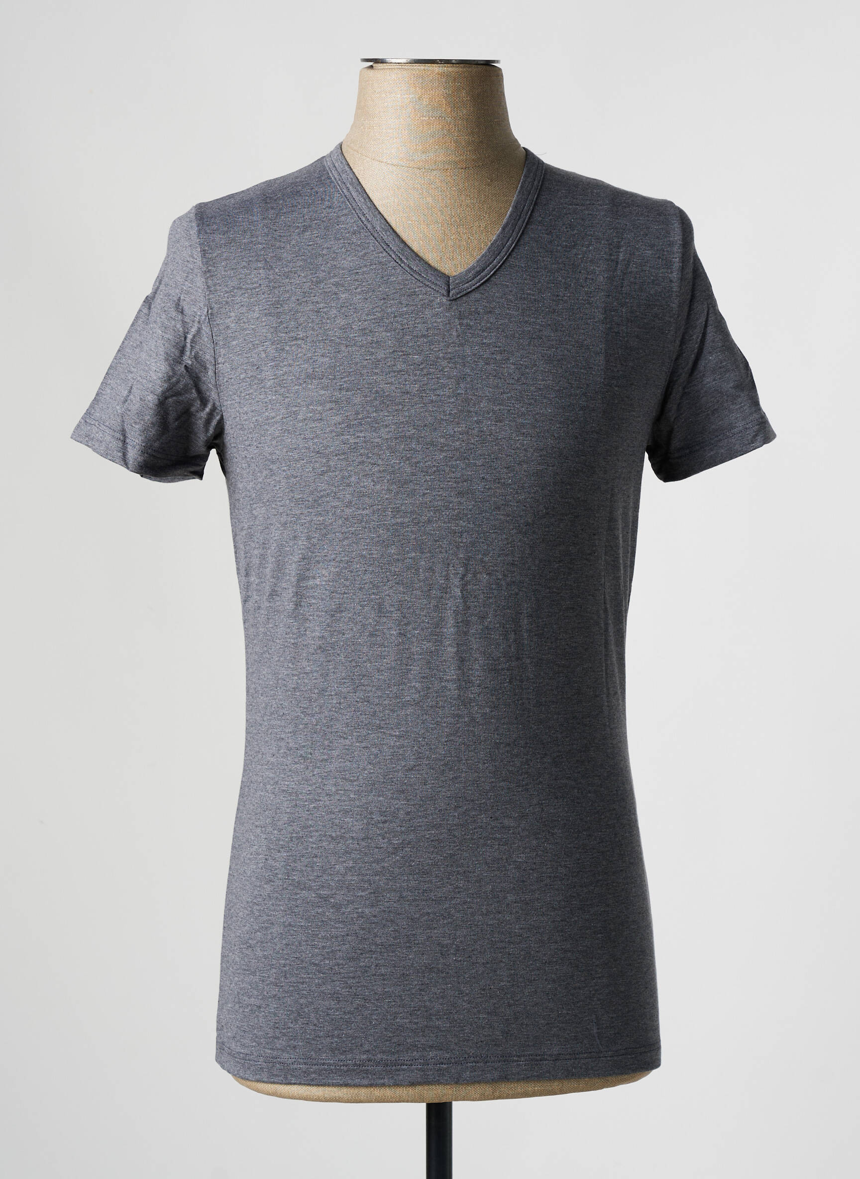 Profitez d'un excellent rapport qualité-prix avec ce T-shirt signé HOM, parfait pour renouveler votre dressing sans vous ruiner. Sobre et moderne avec sa coupe ajustée et son col en V, ce basique gris à manches courtes se porte facilement en toute occasion, offrant confort et style au quotidien à petit prix.