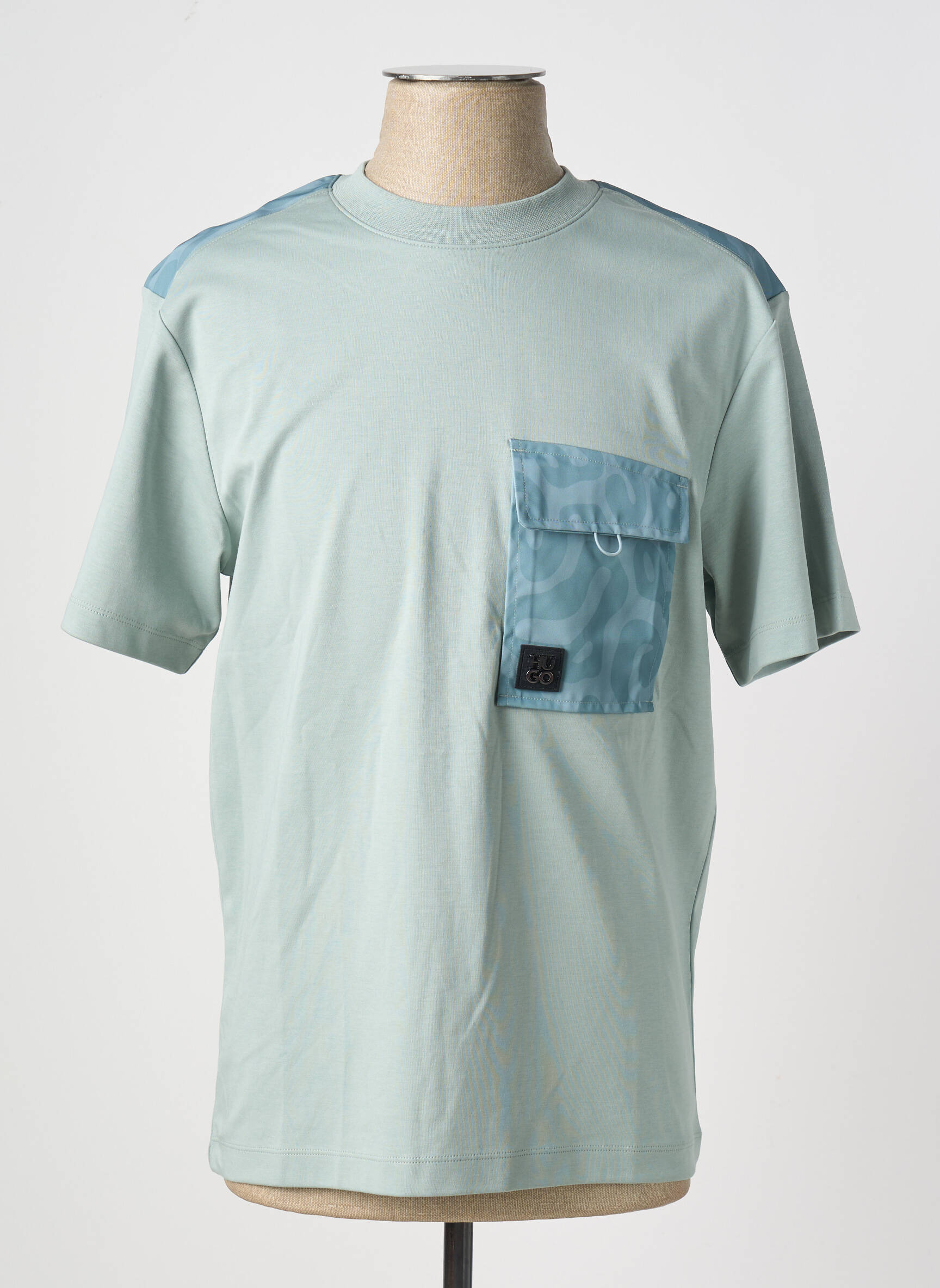 Profitez d'une pièce signée HUGO BOSS à prix mini avec ce t-shirt pour homme qui allie élégance et originalité, mettant en avant une couleur vert clair très tendance rehaussée par une poche poitrine contrastée avec rabat et une touche de bleu sur les épaules, le tout complété par un écusson discret pour une allure urbaine et moderne sans vous ruiner.