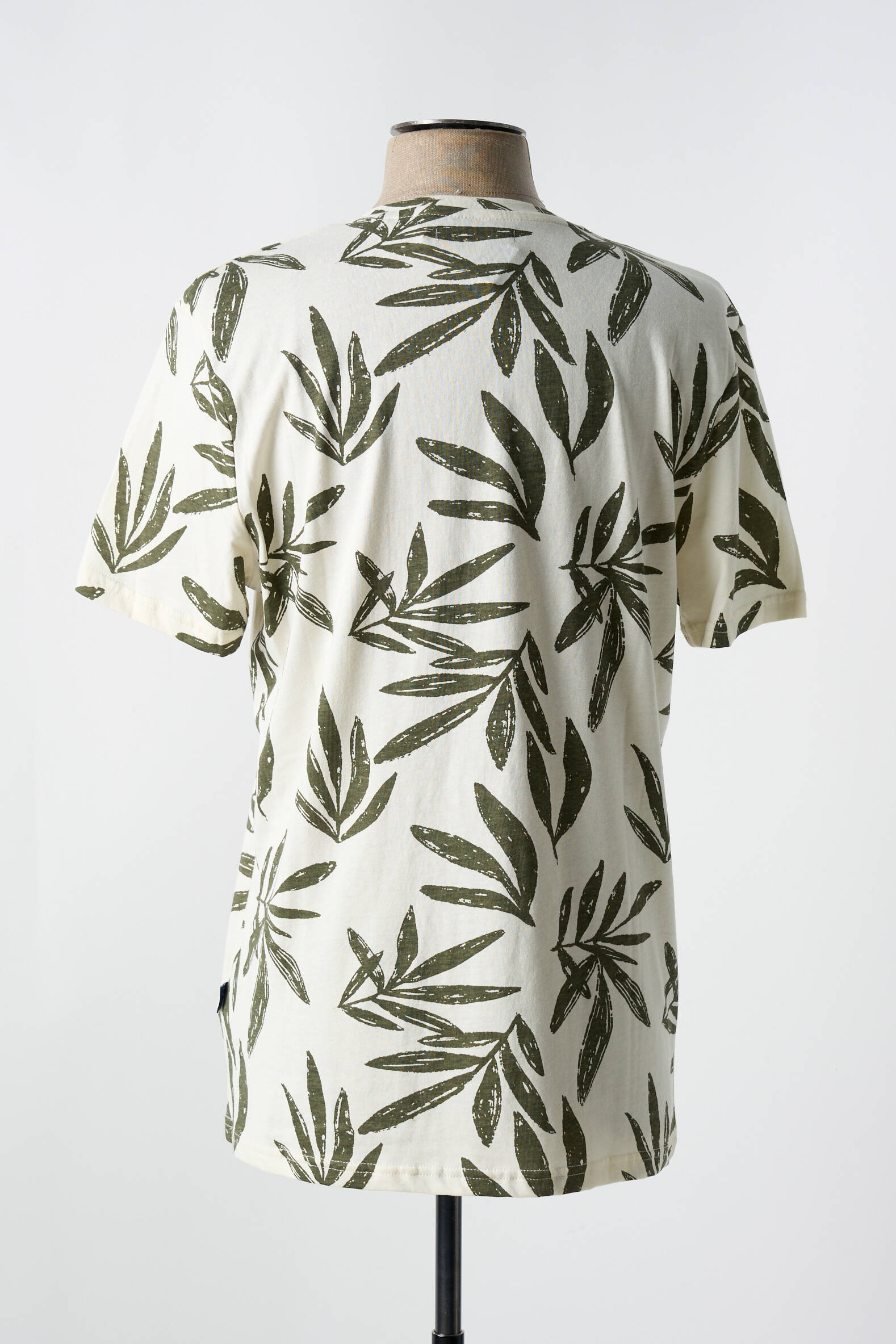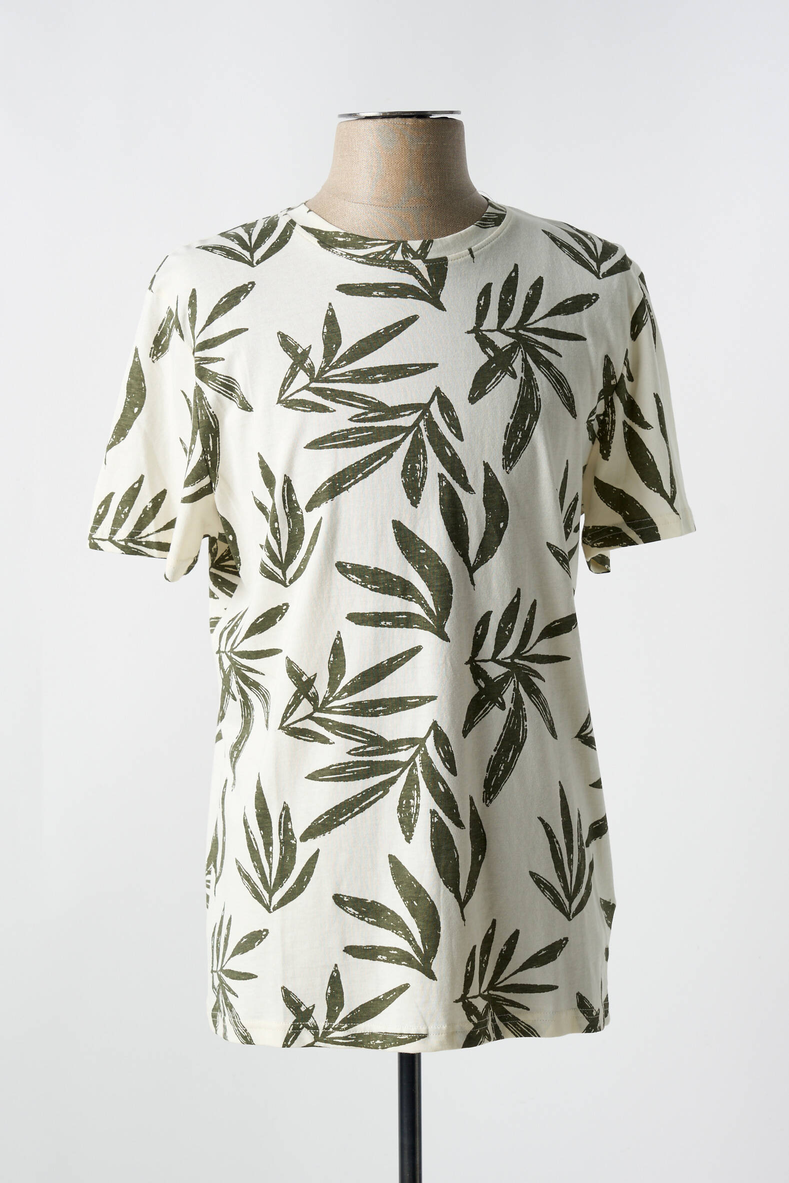 Si les feuilles pouvaient parler, elles raconteraient l'histoire d'un style décontracté et naturel avec ce T-shirt IZAC pour homme, où un motif feuillu vert profond habille un fond blanc cassé, évoquant une balade en pleine nature tout en restant urbain et moderne.