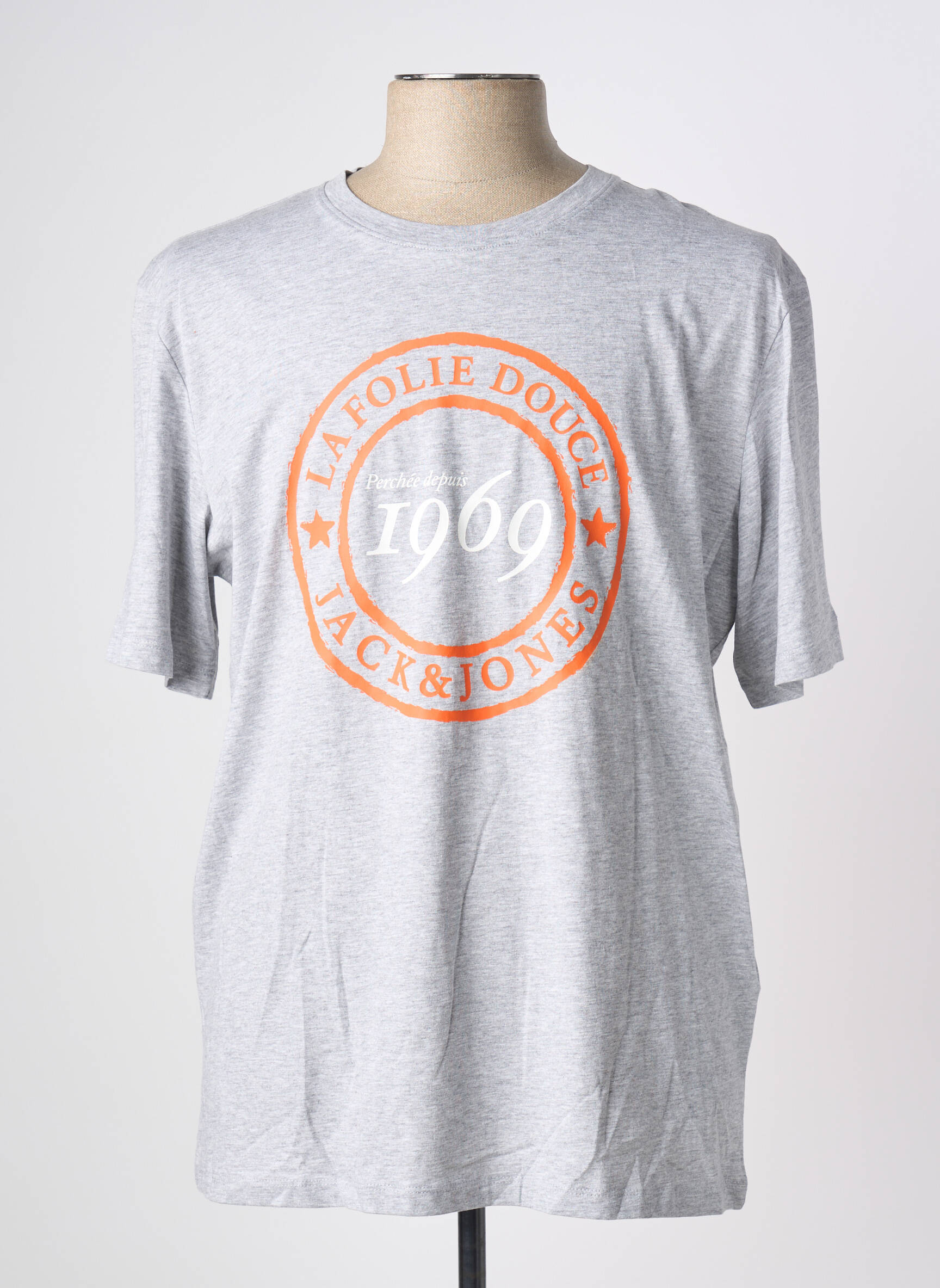 Profitez d’un bon plan pour ajouter ce T-shirt JACK & JONES à votre dressing sans vous ruiner : son coloris gris chiné apporte une touche classique, tandis que l’inscription circulaire orange vif « La Folie Douce 1969 » apporte une note tendance et originale idéale pour dynamiser vos looks quotidiens. Parfait pour ceux qui cherchent une pièce stylée à petit prix, ce modèle allie confort et esprit casual pour accompagner toutes vos envies du moment.