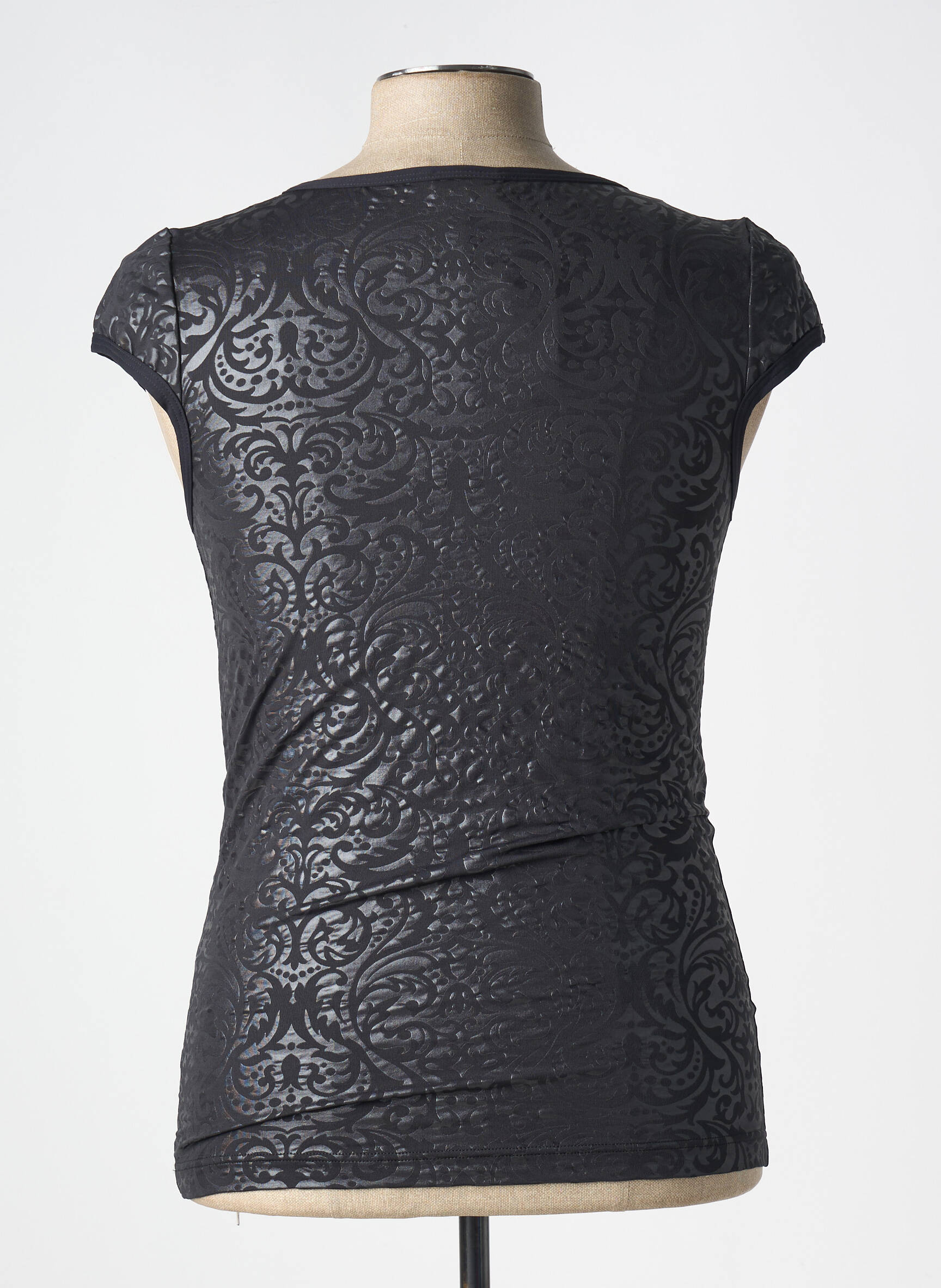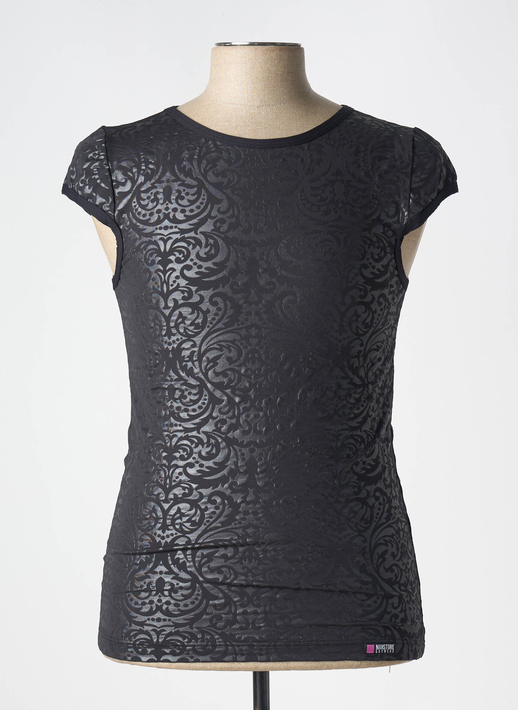 Voici le T-shirt MANSTORE pour homme, une pièce tendance à petit prix idéale pour affirmer son style sans se ruiner. Son design noir élégant se distingue par un tissu semi-transparent orné de motifs baroques qui attirent la lumière, pour un effet original et sophistiqué. Porté en journée ou en soirée, ce T-shirt s’impose comme l'option parfaite pour ceux qui cherchent une touche mode à prix mini.