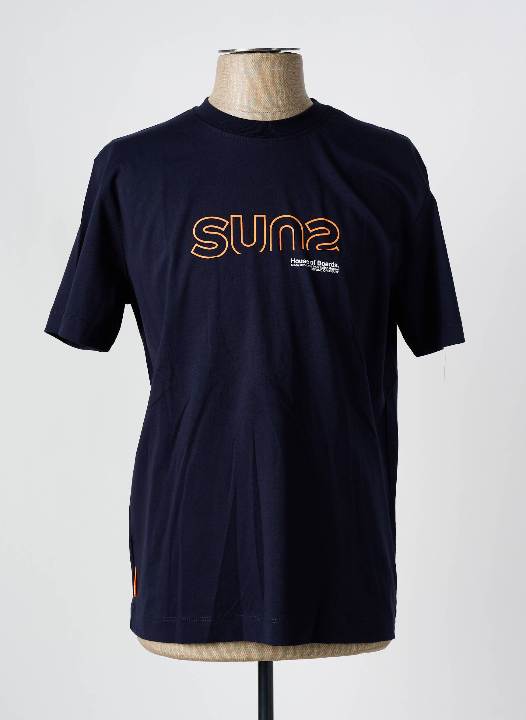 Profitez d’un bon plan avec ce t-shirt homme SUNS BOARDS au style moderne, parfait pour renouveler votre garde-robe sans vous ruiner. Ce modèle affiche une teinte bleu marine élégante rehaussée d’un logo SUNS graphique imprimé sur la poitrine, idéal pour un look tendance et décontracté à petit prix.