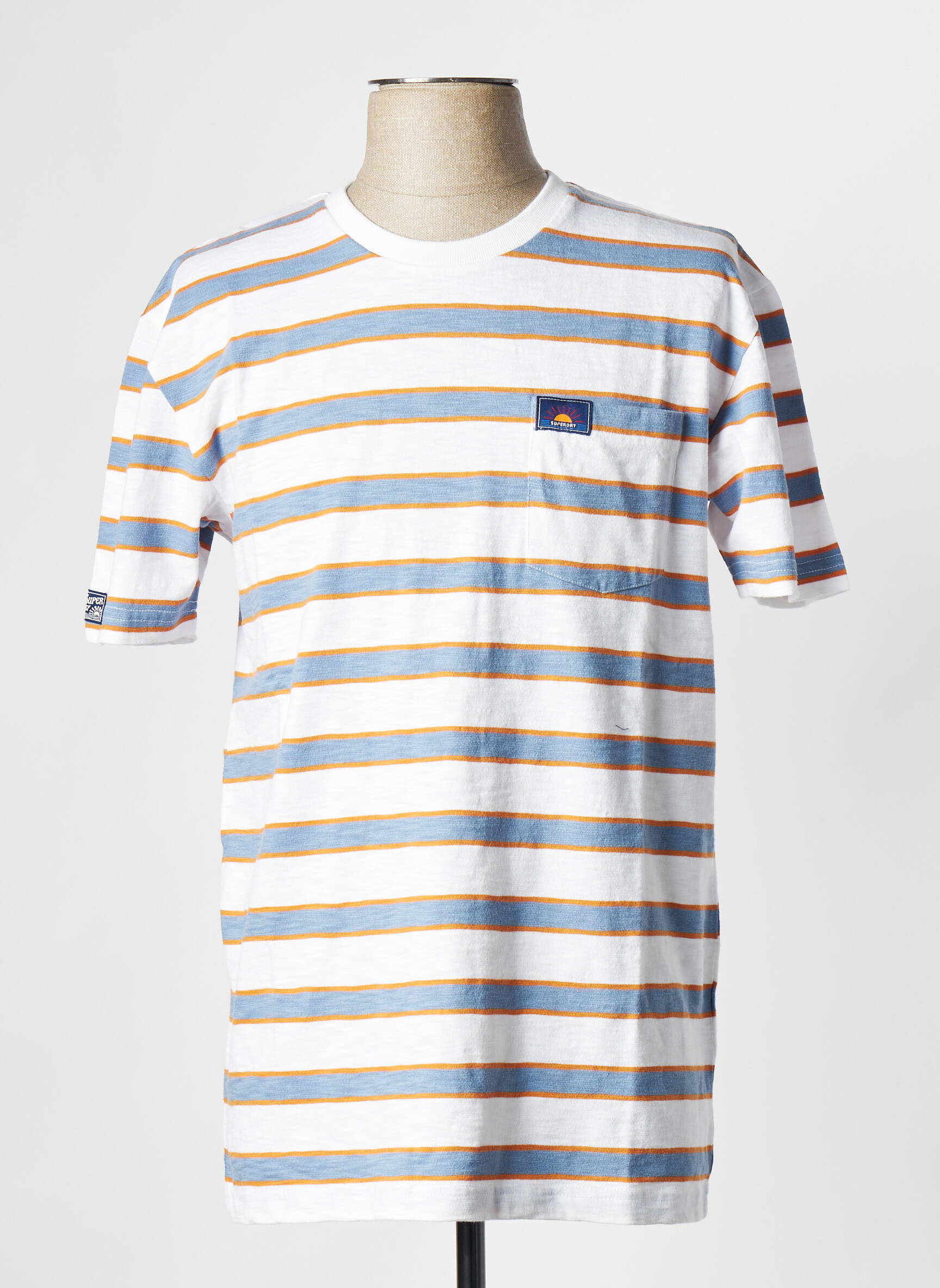 Profitez d’une affaire exceptionnelle avec ce T-shirt SUPERDRY pour homme qui allie style décontracté et petit prix. Son motif à fines rayures bleu et jaune sur fond blanc lui donne une allure estivale et moderne, tandis que la poche poitrine rehaussée d’un discret logo apporte la touche signature de la marque pour un look tendance sans compromis sur votre budget.