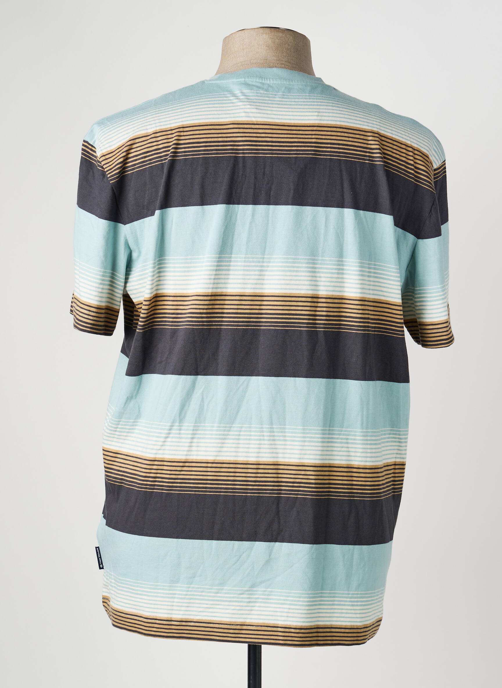 Profitez d’un super bon plan avec ce T-shirt pour homme de la marque TOM TAILOR, une pièce tendance à prix mini qui apporte une touche décontractée et moderne à votre dressing grâce à ses larges rayures horizontales dans des tons bleu clair, marron, blanc et noir, pour un look frais et facile à porter au quotidien sans se ruiner.
