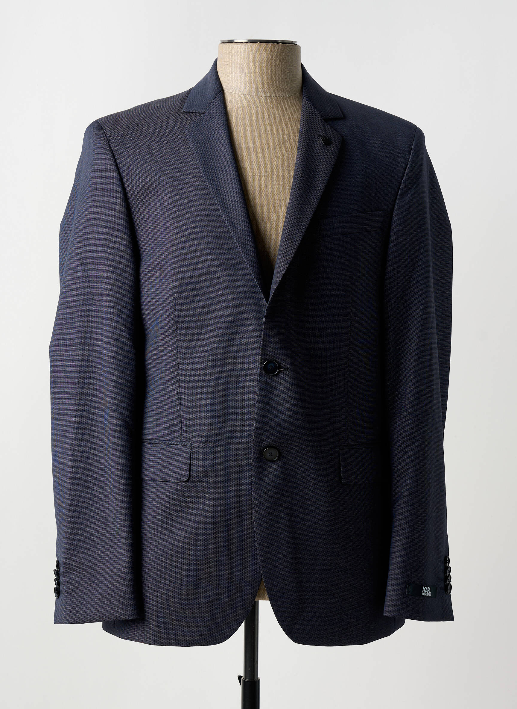 Offrez-vous un style raffiné à prix mini avec ce blazer signé KARL LAGERFELD pour homme, une pièce élégante au design intemporel et à la coupe parfaitement structurée. Idéal pour donner une touche sophistiquée à toutes vos tenues sans casser votre budget, ce blazer à la teinte bleu foncé subtile présente un col à revers classique, une fermeture deux boutons soignée et des poches à rabat pour une allure toujours impeccable. Profitez de la qualité d'une grande marque à un prix tout doux grâce à notre sélection en déstockage.